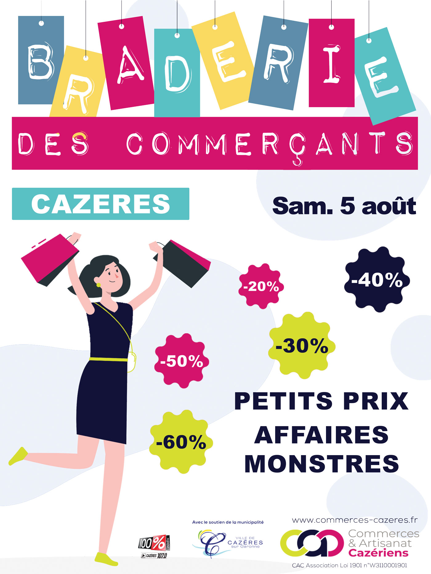 Le Samedi 5 août 2023, se tiendra en centre bourg la braderie des commerçants. Elle sera accompagnée d'un grand vide-greniers, de 9h à 19h.